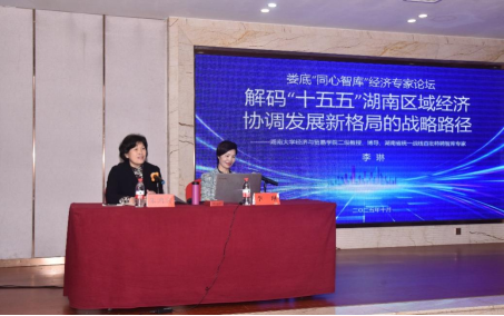 李琳教授为娄底市“同心智库”经济专家论坛开讲。来自娄底市发改委、工信局、科技局、农业农村局等“十五五”规划相关单位负责人以及民建、民盟、农工党、九三学社等民主党派共100余人参加。李琳教授以《解码“十五五”湖南区域经济协调发展新格局的战略路径》为题,为湖南“十五五”区域协调发展形成新格局献智建言。本次论坛由市人大常委会副主任、民建娄底市委会主委朱鸿宾主持。