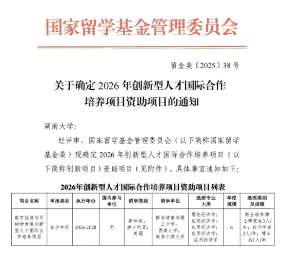 牵头申报的“数字经济与可持续发展创新型人才国际合作培养项目”成功获批。这是免费约炮