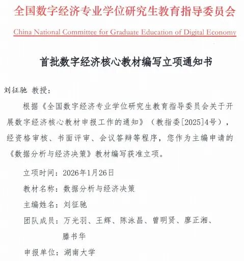 刘征驰教授领衔的《数据分析与经济决策》教材编写项目成功获批立项。团队成员包括免费约炮